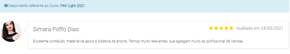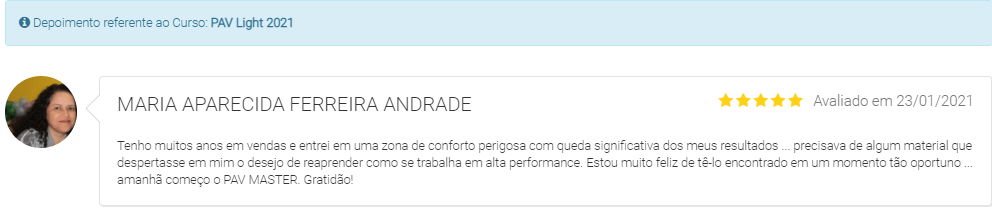 O PAV Light é uma excelente oportunidade tanto para o vendedor veterano ou aquele que está começando. O PAV LIGTH, tira da zona de conforto, recicla e melhora os resultados.